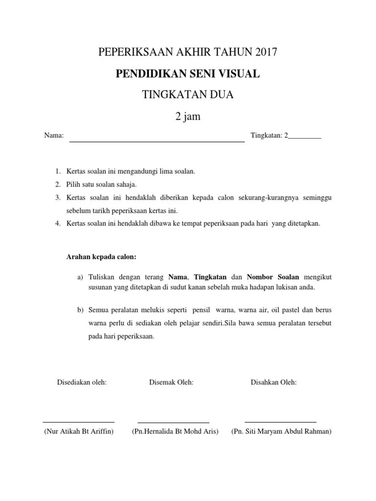 Koleksi bank soalan ujian akhir tahun pendidikan seni visual tingkatan 2 kssm.